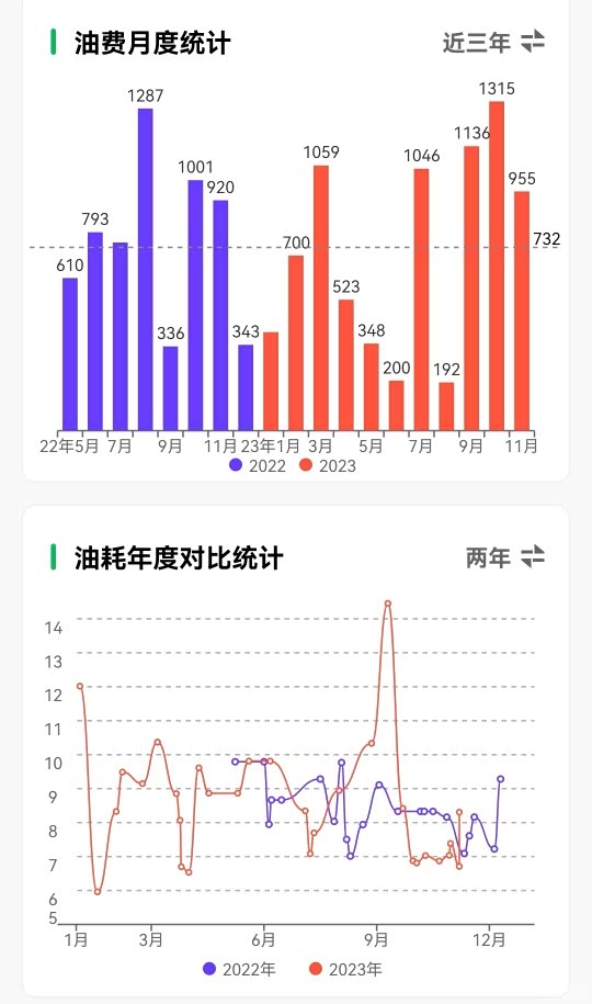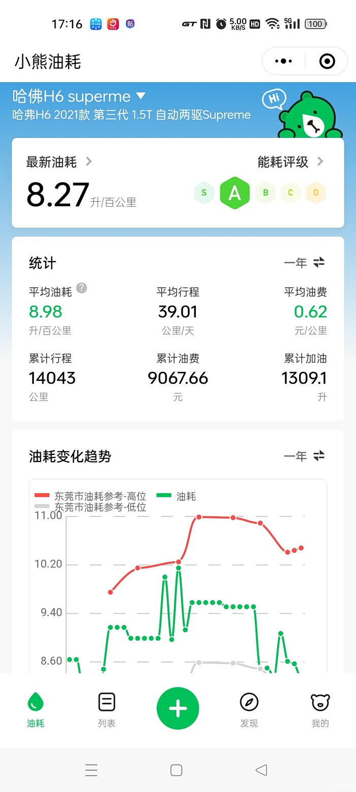 接下来到了最主要的油耗成本环节了,自购车以来,每一次加油都有用“小熊油耗”准确登记。详情可以看下图!总共行驶21500+公里,累计加油接近一万四千元。平均油耗大概在8个左右,高速大约6个,市区10个。