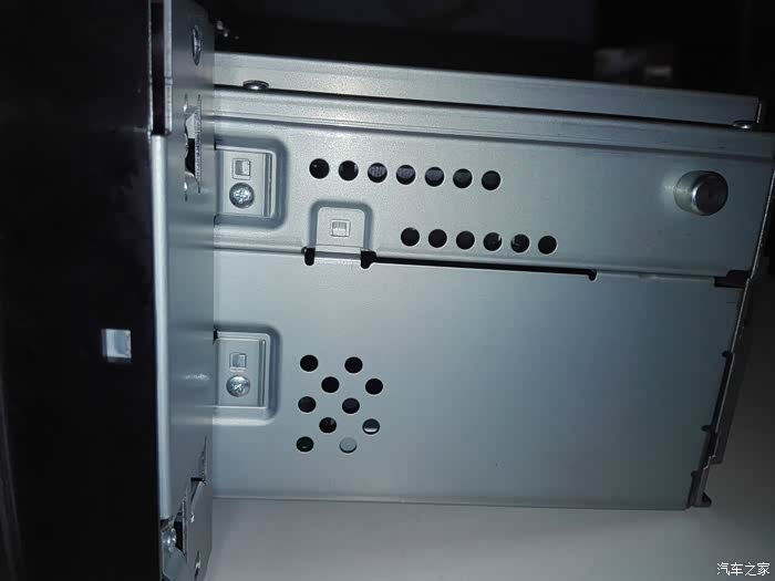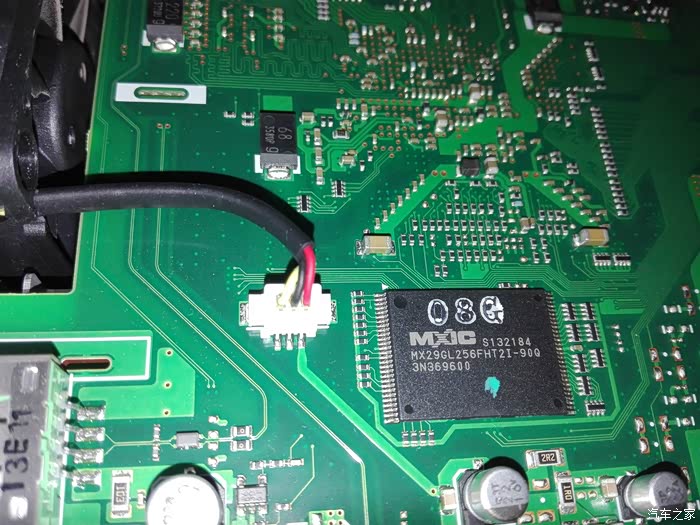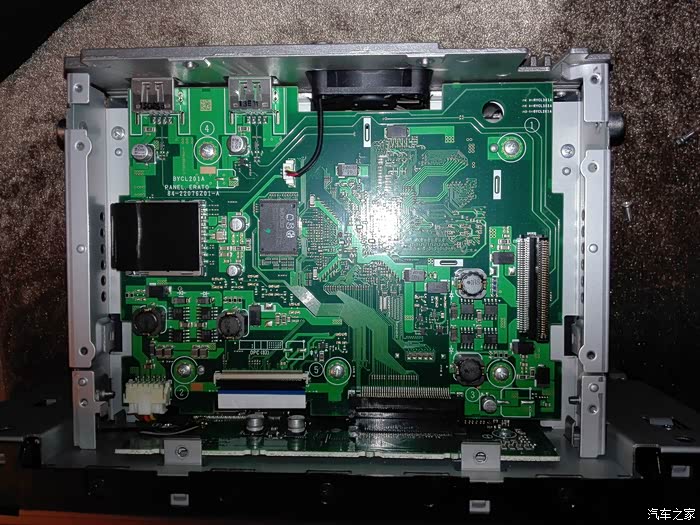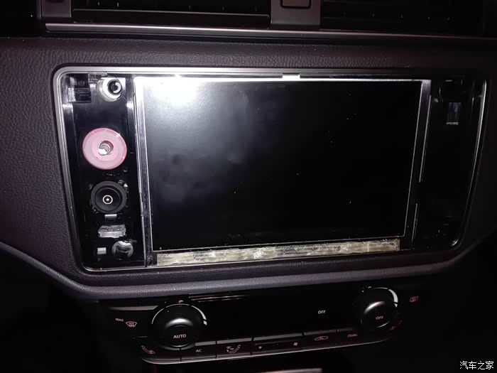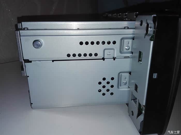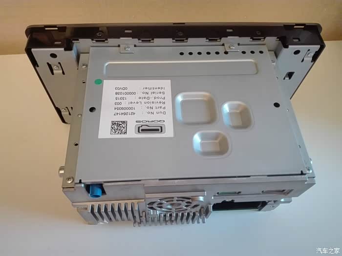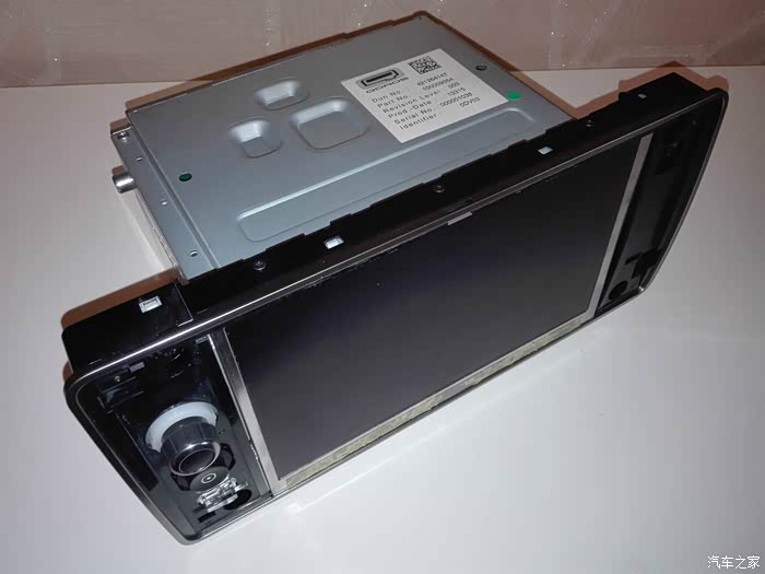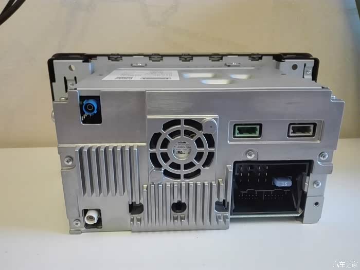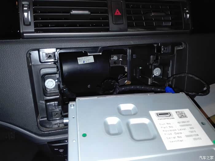 4、整体拉出导航,背面有五个插头,都有插头锁止结构,不能硬拽,插头和插座都有不同的颜色对应,不容易搞混。除了最大的那个黑色插头,其余四个插头捏一下就能解锁。线束最多的那个大插头锁止结构比较特别,有一个大拉手,拉起45度插头就整体松脱了。