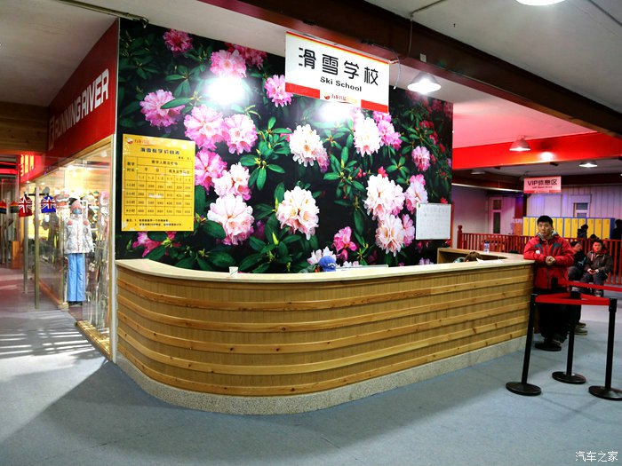 ▼在自助取票系统换完,接下来是去窗口交押金,每人五百元人民币,环顾大厅,大厅里有滑雪相关用品的商店,也有滑雪学校
