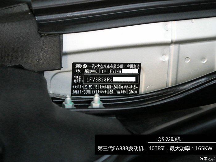 ▼2015款使用的是第三代EA888发动机,最大功率提升了10KW,抛开数据,单纯的驾驶感受,40TFSI在日常驾驶中可以说是张弛有度,日常行驶转速会保持在1500rmp上下,右脚带着点油门踏板就可以游走在大街小巷,就好比在健身房一位健壮猛男一手握一个小哑铃在就训练一下,好轻松呀!如果你右脚轻轻一踩,转速秒超2000转,驾驶员整个人会精神抖擞,因为这台Q5完全是充满活力,动感,总之,新款Q5的动力表现会让绝大多数用户满意,甚至是惊喜。