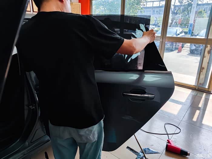 网上购买实体店包施工,邮寄来的车膜只多不少,这点还是非常nice,安装师傅安装手法也是非常熟练,贴的膜没有气泡,边角也没有翘边的情况。遮阳效果和隐私性效果也很好。贴膜师傅技术好!!