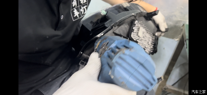 要点2,灯罩胶有热胶和冷胶(不知描述是否准确),探险者是冷胶,灯罩分离后需要人工一点一点清理干净,这个照片没拍到,中途离开了5个小时后回来,已经清理的干干净净正在调试车灯