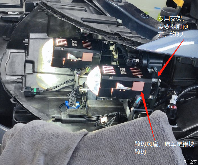 值得一提的是,余总的工匠精神是一直没减,永葆激情,改灯不光的点亮调好就完事,还尽可能的做到视觉美观。各位看官可以看一下原车大灯特点,原车车灯不大,但是其被动式散热的散热快很大,当然这也不是问题,问题是新改装的车灯是主动式散热,总体尺寸偏短