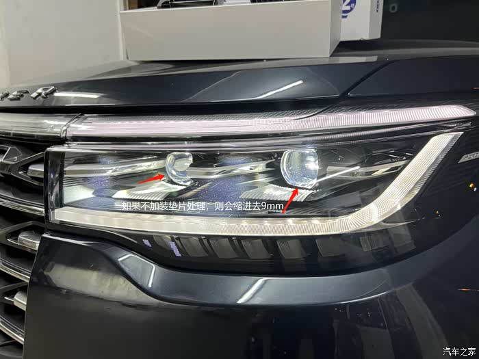 偏短长度约为9mm,如果不做支架延长处理,则车灯视觉效果较差,灯头缩进去9mm,整个车灯显得非常空洞无神,如果垫出来9mm,则透镜上边缘将会和灯罩上边缘发生接触,影响电动调节,为了留出余位,师傅细致的用锉刀微改,以至于。。。余老板不说我也不知道。