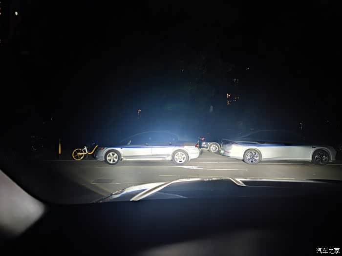 由于夜行量较大,原车虽说标配LED透镜,但亮度确实不足,不仅亮度相对较低,而且灯光铺路质感极其单薄,好似一层纱,不厚实,远光就更加不用说,毫无铺路效果,近处照不亮,远处光斑很发撒,夜行视野还是很差