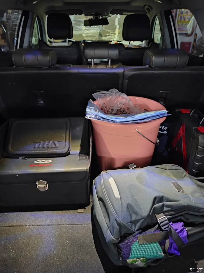 看看我的后备箱平常都有啥?奇瑞收纳箱、水桶、背包、应急包、雨伞等一股脑全放进了后备箱,本以为会占满不少空间,可没想到,放进去之后,后备箱依然显得很空。看着那剩余的大片空间,我不禁感叹,这后备箱简直就是个“巨无霸”!