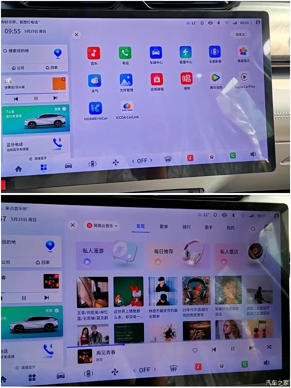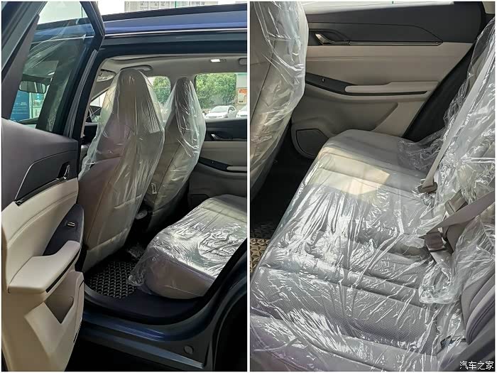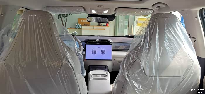 从后座看中控,视野也比较开阔,14.6英寸的中控屏在后排也可以清晰地看视频。只是中控屏上方的空调出风口略显突兀,后期改款可以优化一些。