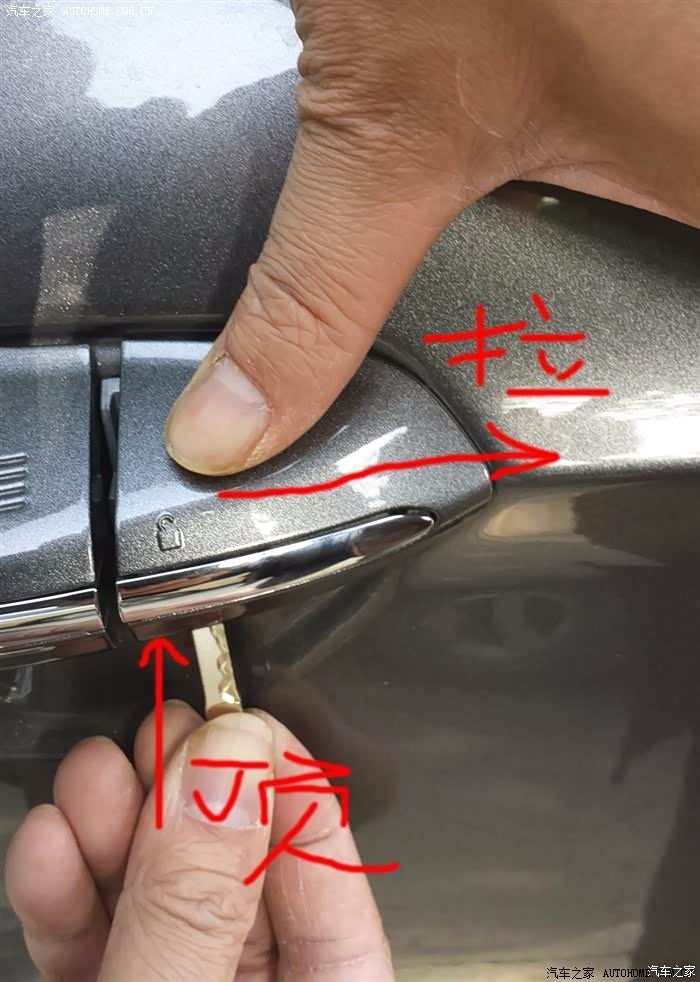 是车没电了还是钥匙没电了。钥匙没电换电池。车没电了用机械钥匙打开车门,扣开前盖子找人搭电。钥匙换电池看图看到机械钥匙了吧。车没电了用上边那个机械钥匙上下图这个位置打开车门,到主驾驶左脚那个位置扣开前盖子,找人搭电发动汽车。