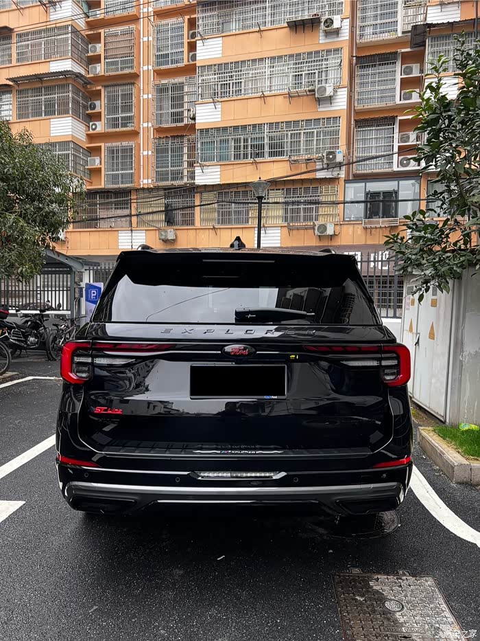 就瞄准了符合父母孩子的刚性需求用车“家庭硬汉探险者”:1.贴完车衣,改个红标…大探七座ST Line基本不用动了,熏黑轮圈大宽胎(当然要是315的就更好啦)一直是我买车的视觉基本要求。2.三大件除了少个双叉臂有点遗憾,其它都完全符合这价位的档次,纵置后驱的布局甚至达到高一档次的车型。3.动力和操控,尤其高速上这么大的车还能牢牢的把你吸在路面上的稳重和反馈,对于有车感的人自然就明白。4.感官和舒适,男人天性有忠迷机械感,大探的机械怒吼虽比不上跑车,但能满足我能力范围内的听感,尤其还带点本田机车CB400的男人最爱的“口哨声”