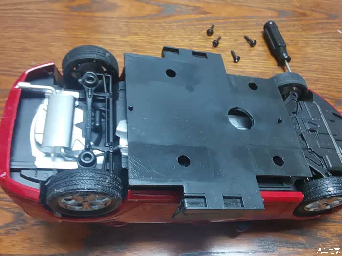在家里找了最小的梅花起子准备给它拿掉展台,结果在背面发现车模自带梅花起子。