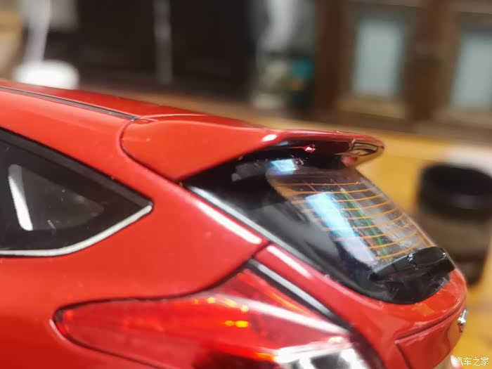 来看看福克斯的尾部,后尾门中部向内凹进,年轻化十足,后视窗带有加热丝,上方为扰流板,扰流板的中间位置带有隐藏式的高位刹车灯
