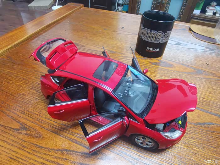 话说消停了两天后,在家整理内务,结果又翻出一台车模,奇怪,我记得给车友都发了啊,怎么还有一台。其实这台车模是13年新款福克斯刚刚上市的时候,当时家家组织的新款福克斯挑战纽伯林克活动,原计划是给车友会会长的,只是我没有想到当时发来两箱12台车模,后来给福克斯的会长发完后,剩下的本来想用于年会礼品的,后来因为种种原因,被我遗忘掉了,多亏今天自己一时兴起,放箱倒柜找到了,要不然还不知道放到什么时候呢。