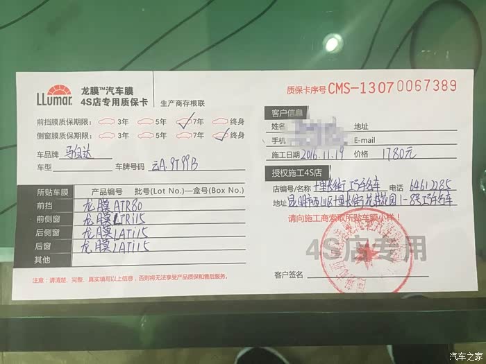 对阿特兹的关注从2014款到2015款,再到现在的2017款,期间的苦苦等待只有自己知道,尤其是在2015年7月29日昆明易道良马的跑路,意味云南唯一一家一汽马自达4S店也宣告关门。一方面持续关注新车上市消息,一方面还在不断打听云南的一汽马自达4S店何日才能重振旗鼓开店营业,着实有些心累。曾差点为了蒙迪欧移情别恋,也曾因为迟迟没有改款上市消息差点订了CX-4,但最后还是不忘初心,终于圆梦。过程是曲折心酸的,但或许也正是因为如此,直到最后拿到车钥匙时甚至都有些不敢相信幸福终于还是来了。