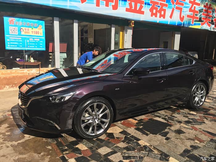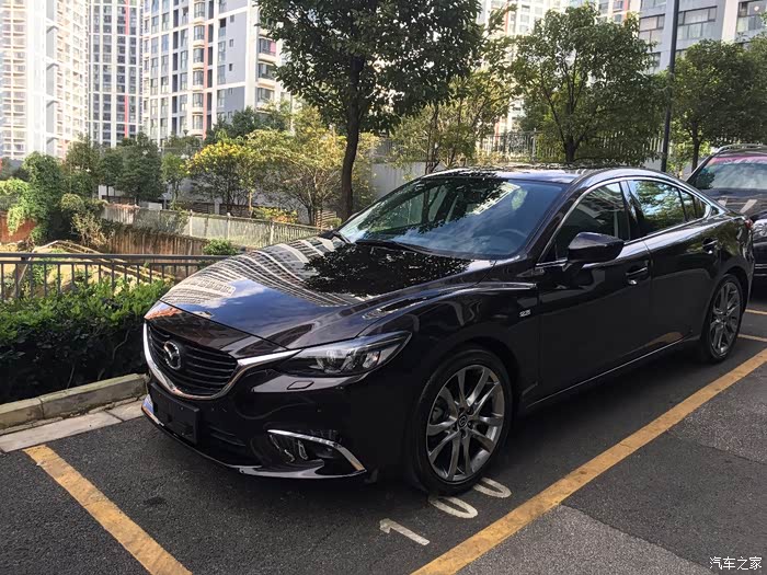 最满意的毫无疑问是外观。从2014款阿特兹上市就开始关注,尽管当时的外观已经非常漂亮,但无奈看到了海外版的阿特兹,天蝎眼日行灯,时尚的中控都让我口水直流。决定耐住性子等改款,2015款很没有诚意,虽然轮毂的改动很漂亮,但大灯和中控依然让人诟病。又苦等两年,终于迎来2017改款,尽管还是没有“胡子”(中网灯带)和“眉毛”(尾灯灯眉),但已经让我足够满意,熬到上市就下了订单。个性的外观就应该配上个性的颜色,魂动红确实漂亮,但对奔四的我来说实在难以hold住,紫晶檀,买紫送黑,妥妥的。