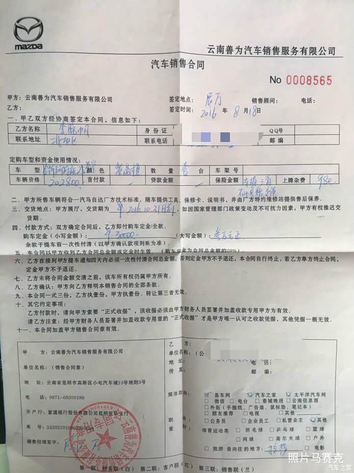 2016年8月18日订车,10月19日提车。比起之前的曲折,3万的定金,两个月的订车周期似乎都不值一提了。 而且上市就给出了满满诚意的优惠政策,最重要的是尽管云南就善为这一家4S店,仍然按照厂家优惠政策执行,在订单络绎不绝的情况下,没有加价,没有强加装饰,这个值得点赞。
