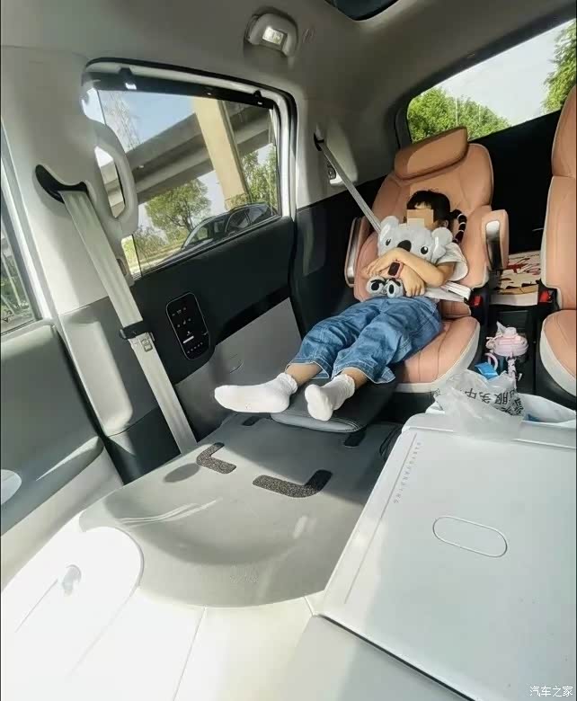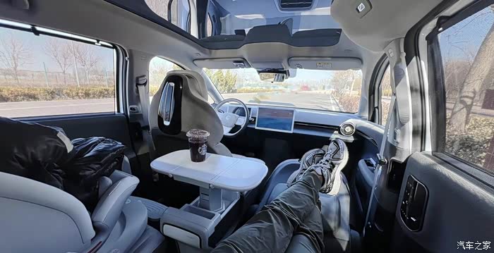 至少有一点,后排面积大,就有了自己装点的自由空间!面积不够怎么都不行的。如果某一天,官方的小桌板可以改装为延长到侧面座椅就好了。不能的情况下,那就几十元买一个临时用吧。