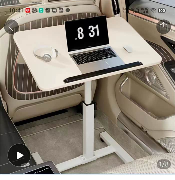 好在后排空间足够大,如果再放一个车载小桌板,位置也是可以的,实际比划过,膝盖距离座椅靠背还有四五圈,掉星的商务车空间价格了。目前选择和尝试了两种,一种是下方为工字底座的,比较结实和稳定,还有一种轻薄款的,面积更大,折叠起来更省空间,只是稳定性稍不足。