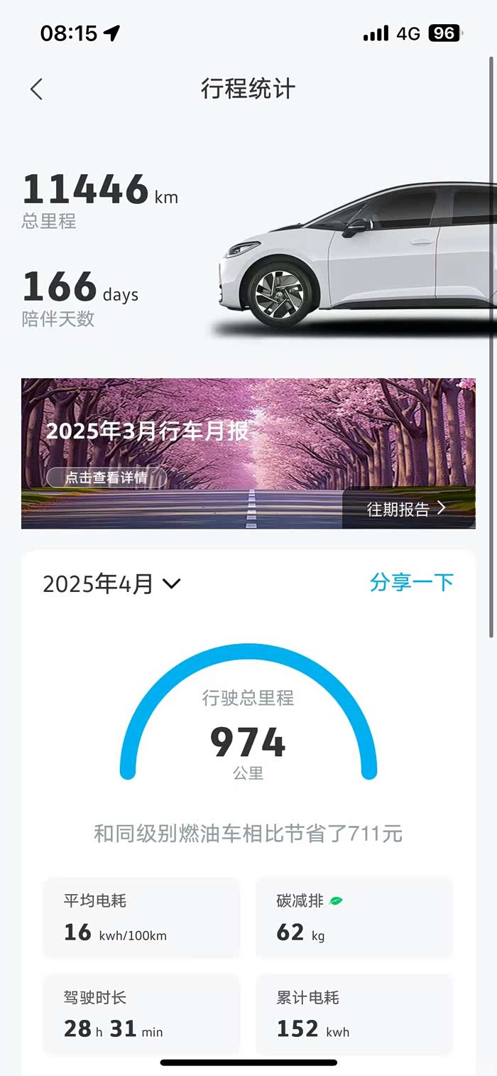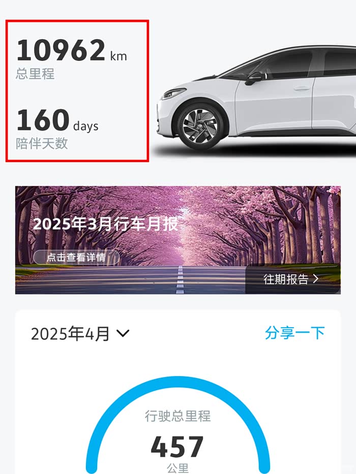 我在老家装了充电桩,宁波市区周边外出快充也方便的,自己长途需求很少,大部分市区代步,到没啥续航焦虑的,高速跑得比较少,没电就充就是了。用车160天,跑了10962公里。