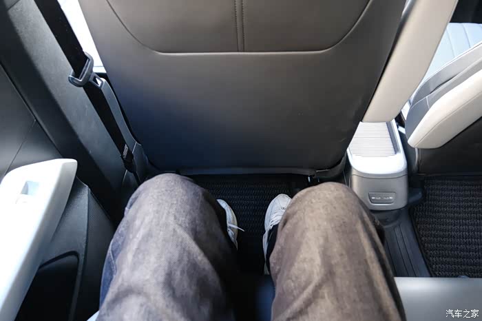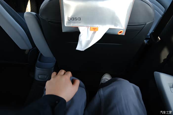 在乘坐空间方面,我身高175在前排调整好坐姿后,此时头部还有舒适的距离。保持前排座椅位置不变,来到后排,头部空间为1拳的距离,腿部空间2拳,跟某豚比ID3是紧凑型轿车,所以内部空间还是不错的,并不小。