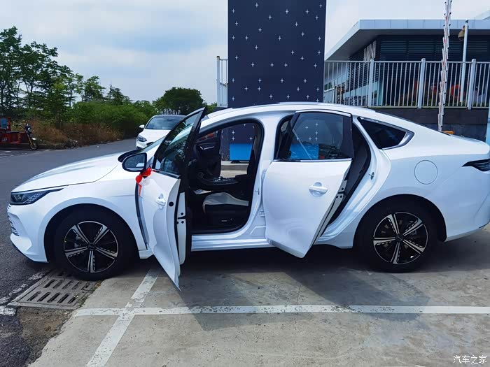 4、个人感觉优势:?我是新手,又加上新车,开起来战战兢兢,还好有360全景影像,盲区都能看到;?外观真是喜欢,白色的车身以后加上绿色的车牌,非常的奈斯,而且白色现在提车速度应该比灰色的快点;?空间:我171的身高,体重150斤,我媳妇也是170身高,坐在后排膝盖还有三拳的距离,至于后备箱只能说够用,没啥亮点;?4S店的服务不错(主要是小姑凉漂亮),细声细语的,不懂就问,一问就回答(当然有很多都是她去问别人的)个人感觉缺点:?价格有点贵了,没啥优惠,全部搞完15万多,都够我再娶2个媳妇了;?车道偏离提醒,个人很不喜欢这个感觉,一偏离车道方向盘就震动并且给我一个回馈的力量,我人又不瞎,不喜欢被机器控制的感觉;?电量不足时加速吃力,有一天下午下班赶着接媳妇,超车时候发动机的轰鸣很大,因为我是新手感觉有点夸张了。以后还是勤充电吧,能省点油费是一点,纯燃油车这年头真开不起了,另以希望战争早点结束,漂亮国别再整幺蛾子把国际油价搞这么高了