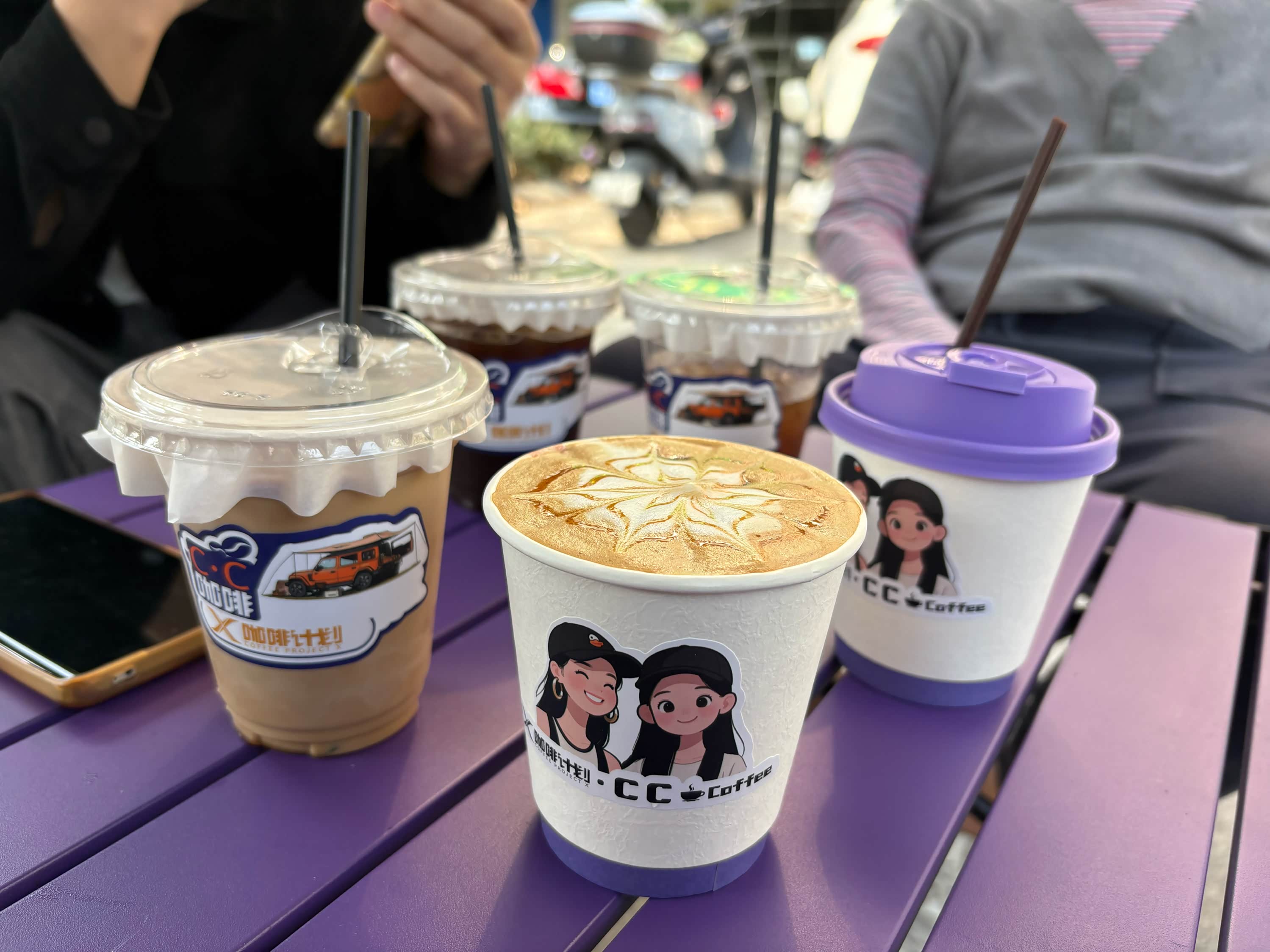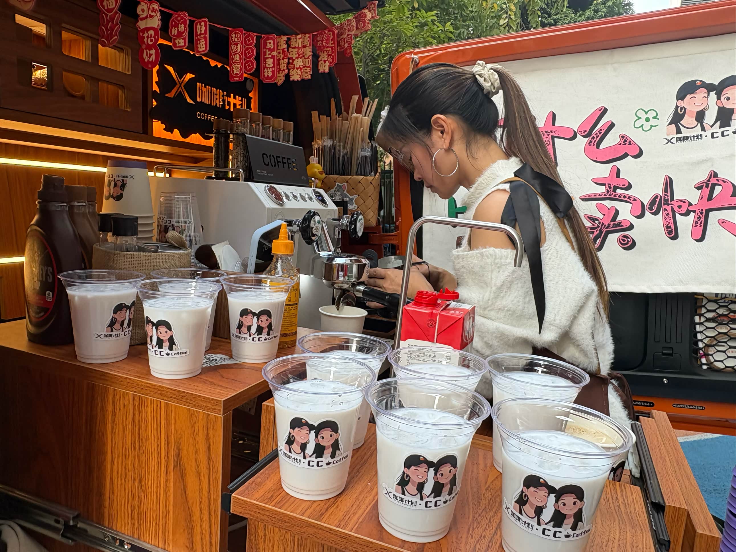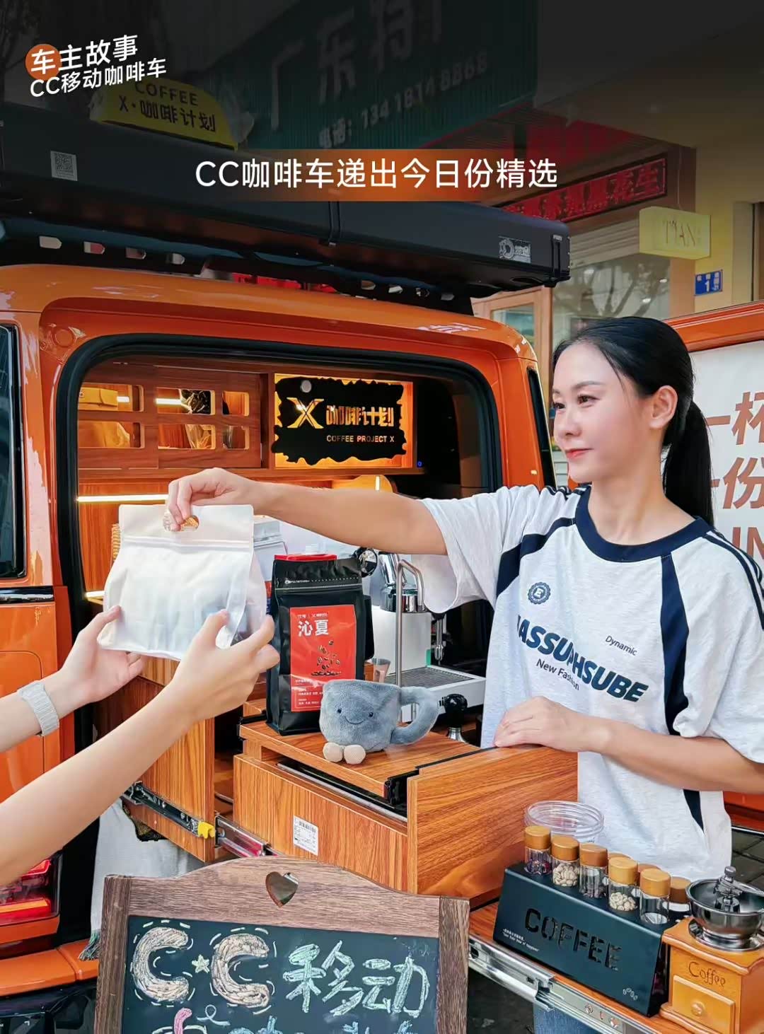 从一开始手忙脚乱,到现在游刃有余,从一个粉丝到几百粉丝,从一天十几杯到接单上百杯,我们因为热爱坚持了下来,如今,“CC Coffee”已成了本地小有名气的流动风景。我们在文创市集摆摊时,常有人指着车问:“这是什么车?怎么能这么酷又这么实用?”最骄傲的时刻,是听到客人说:“你们这杯拿铁,比我常去的精品店还好喝。”回头客里甚至有每天绕路数公里来打卡的粉丝们。还有给我们送汤送水果送零食的粉丝们,他们热爱与热心为我们创业的路增加了不少动力。