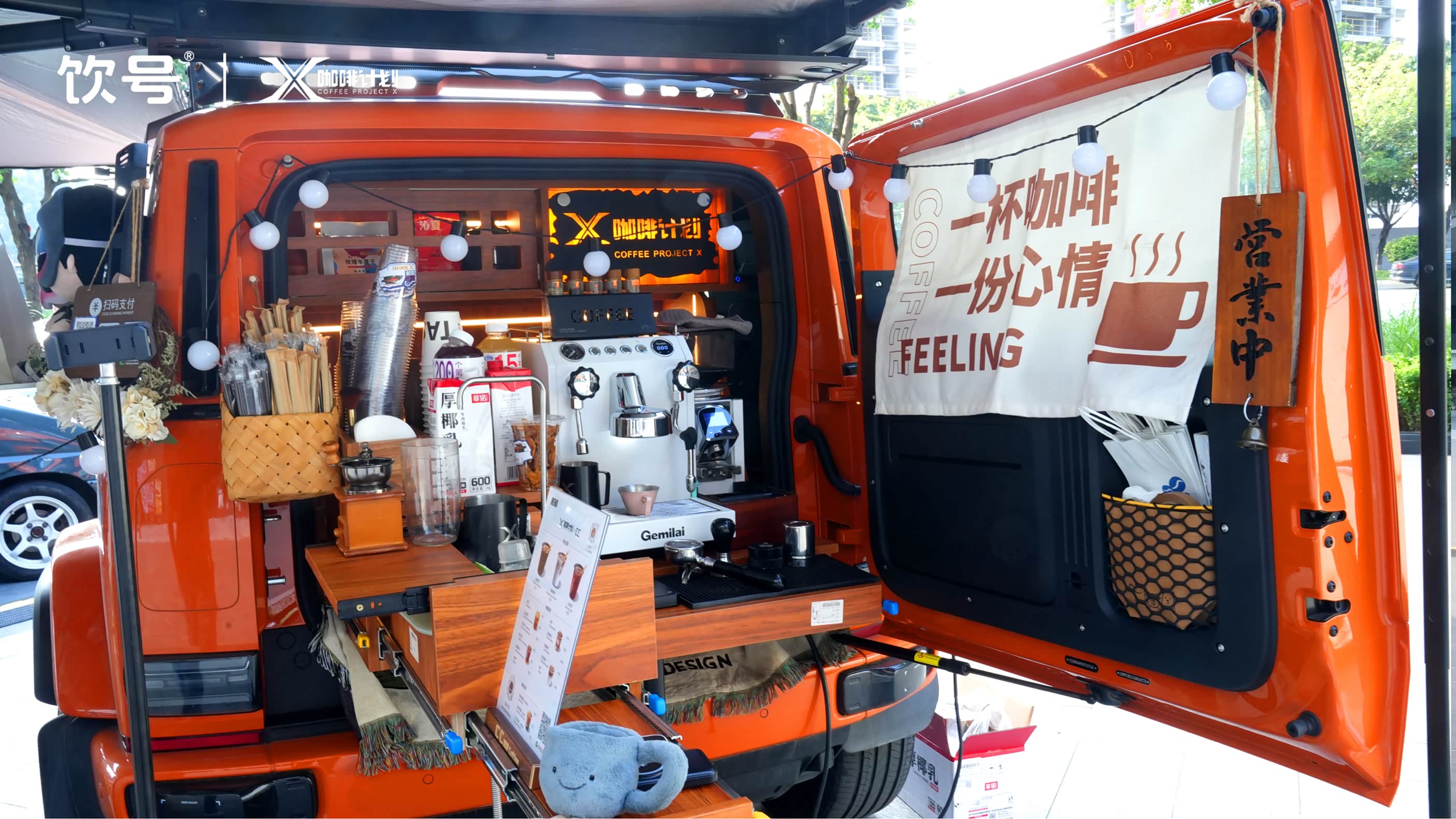 车开回来后,我们开始琢磨:这后备箱怎么这么能装?露营装备、采购物资都轻松容纳。这时候某天刷到X咖啡车视频,我忽然盯着V23方正的后尾门发呆——这个开口高度、平整地台,简直是天然的吧台底座啊!