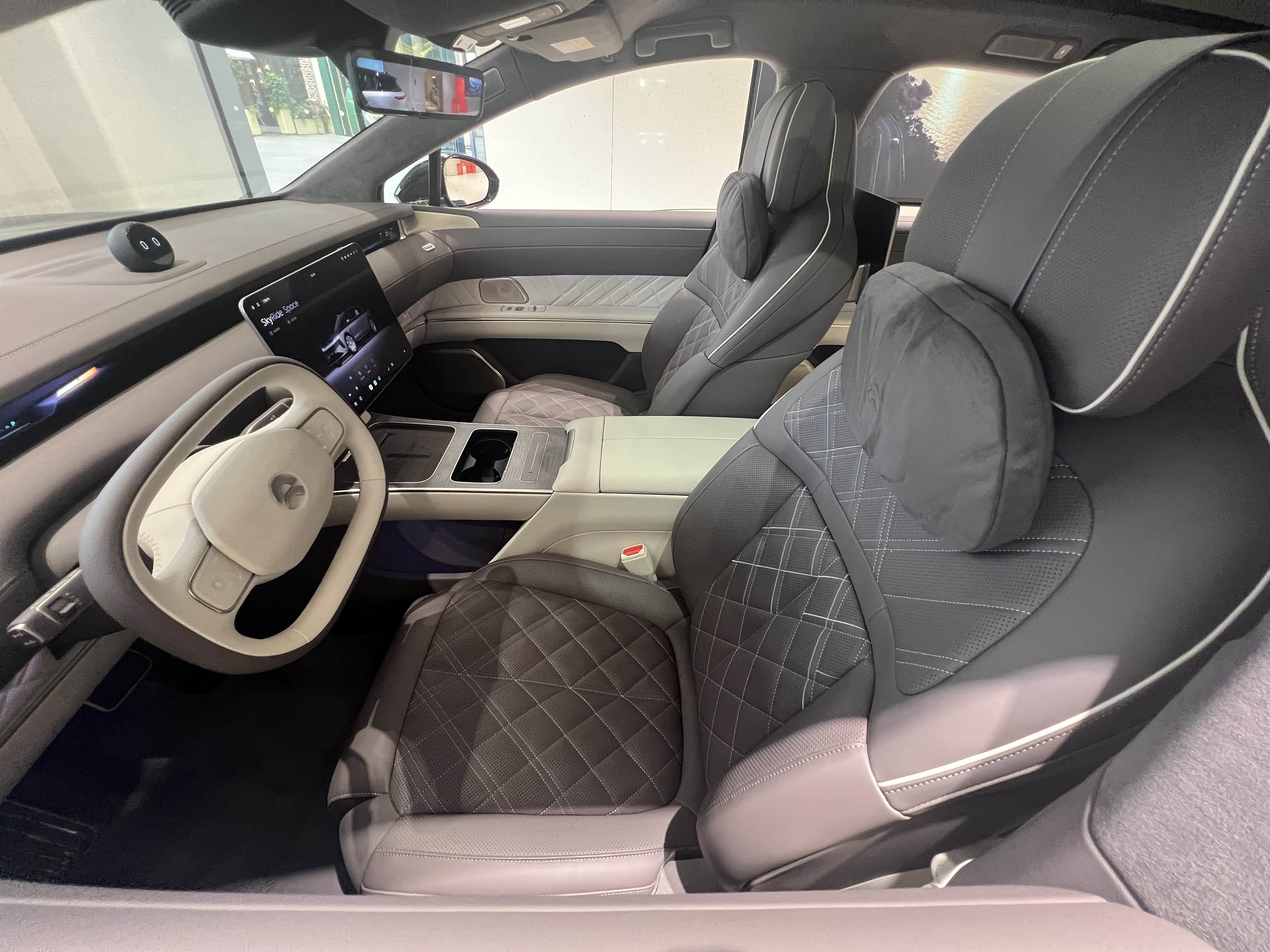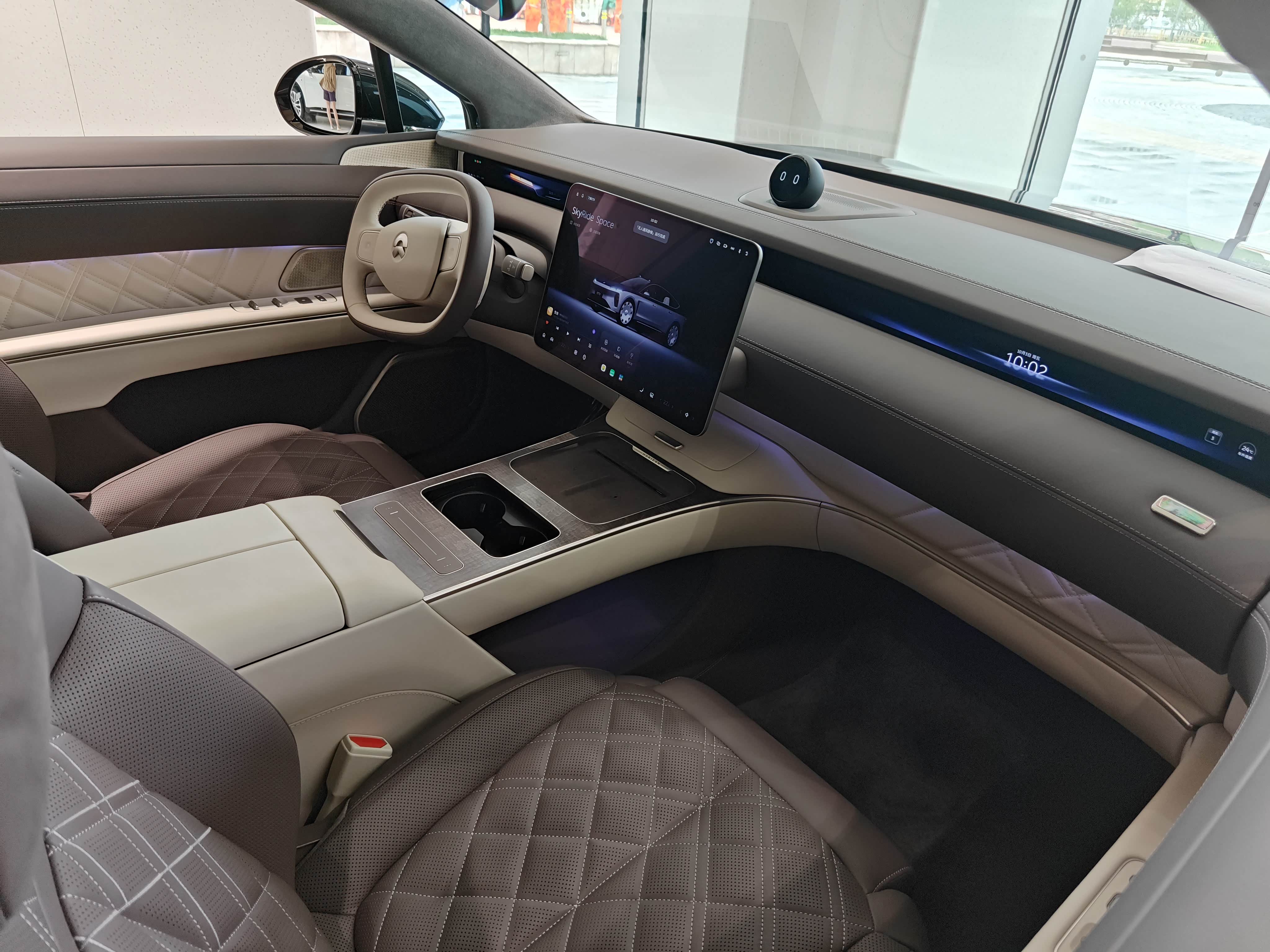官方出的外观和内饰双拼还真是有点打破传统行政车的意思,加上大饼轮毂,不得不配合蔚来的审美,绝绝子。进去体验了一把,跟普通et9一进去感觉完全不一样,内饰整体感觉非常年轻有活力,天际线的屏幕,羊毛地毯,棕白双色内饰,像是现在精英喜欢的款式。