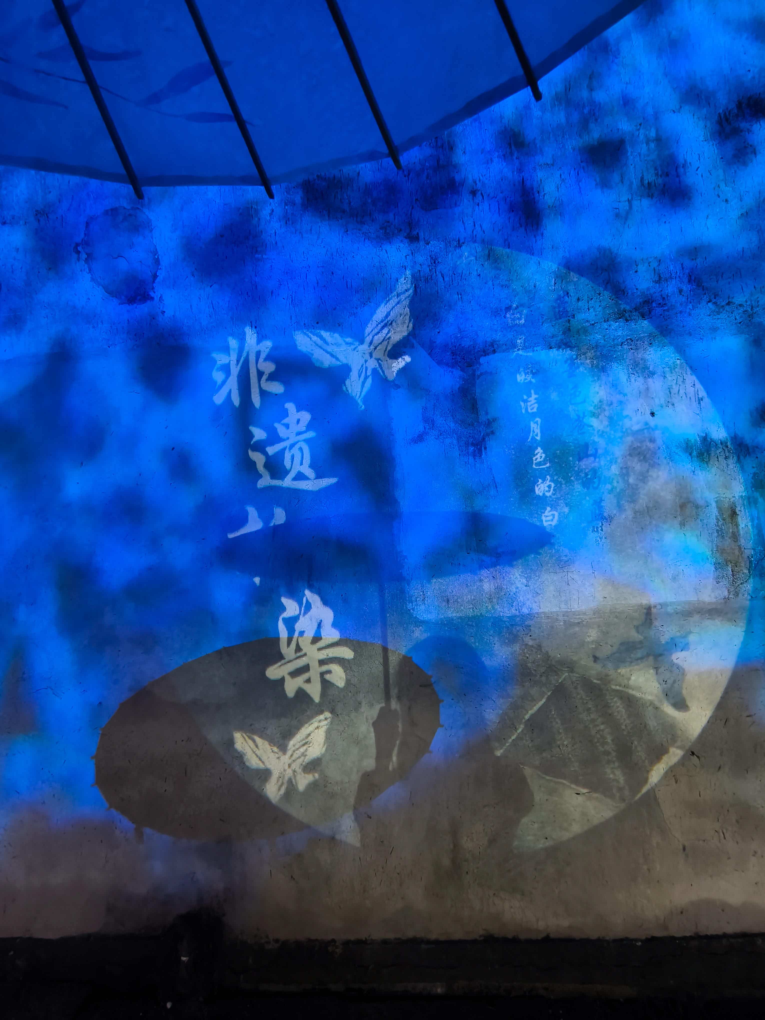 我沿着河边的青石板路慢慢走,脚下的石板被傍晚的露水打湿,有点凉但不滑。路边的店铺大多还开着,有的是卖手工艺品的,玻璃柜里摆着蓝印花布做的小钱包、竹编的茶杯垫,还有用木头雕的小摆件,老板坐在门口的竹椅上,不吆喝,就摇着蒲扇看路人,特别悠闲。我进去逛了家蓝印花布店,老板娘笑着说:“晚上人少,你慢慢看,这布都是镇上老人手工印的,洗了也不掉色。”我摸了摸布料,粗粗的但很结实,最后买了块小方巾,才25块钱,老板娘还特意用牛皮纸包好,系了根红绳,看着就精致。