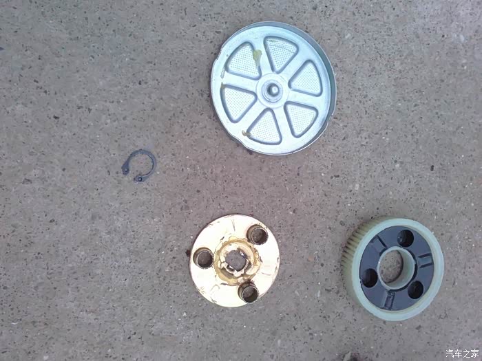 轴上的黑色零件叫 轴用弹性挡圈,最好用轴用卡簧钳拆。我用一字螺丝刀别开的,结果一不小心,弹性挡圈蹦到3米开外的草丛里,找了好久才找到。
