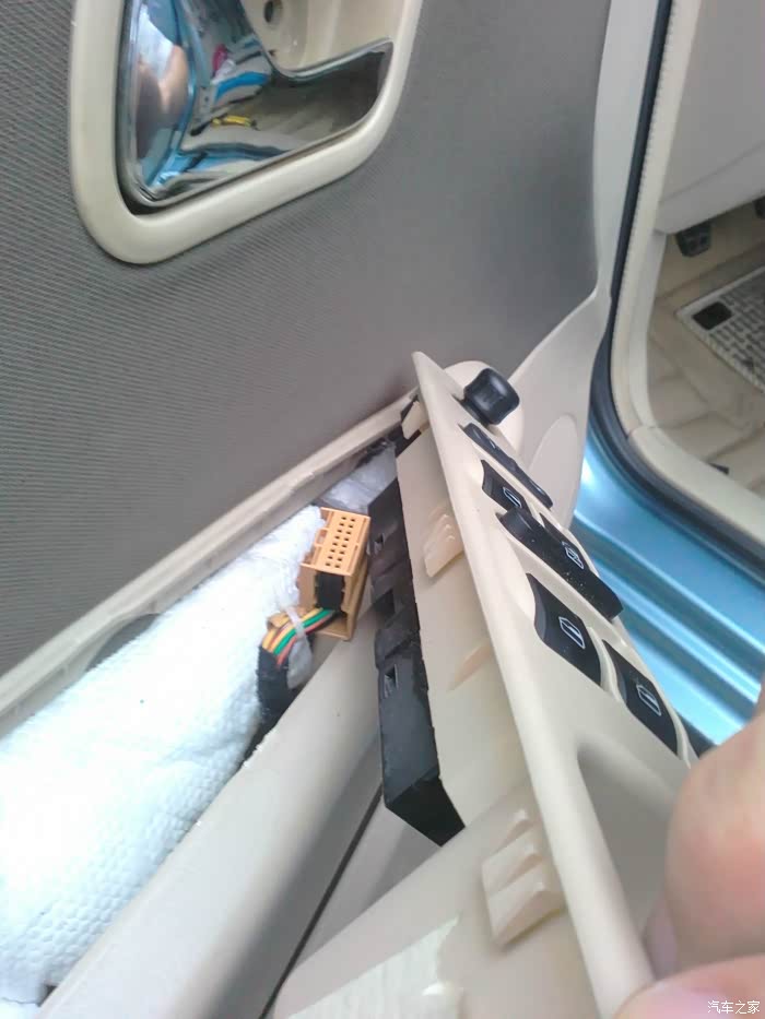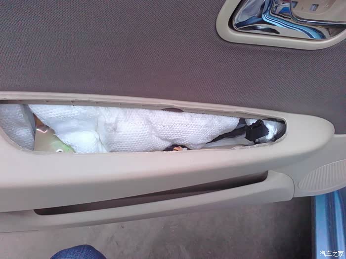 最后用力向外掰内饰板, 将内饰板拆。然后拆掉车门内拉手的钢丝拉线。