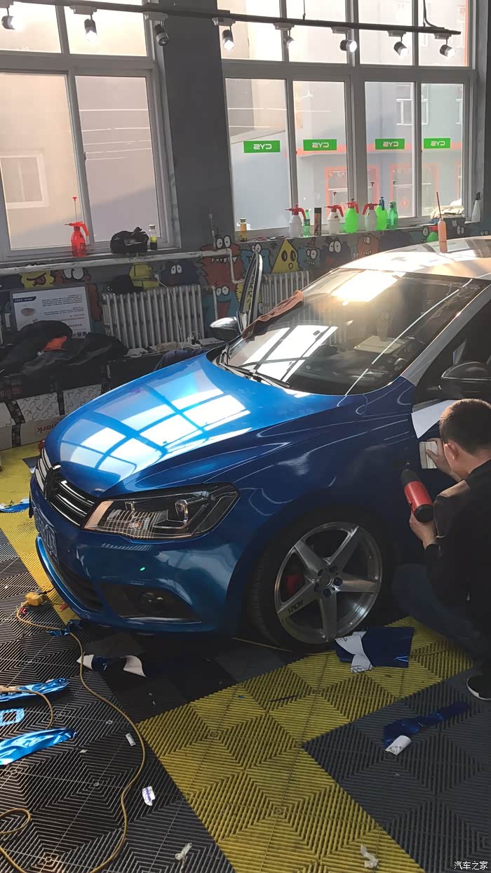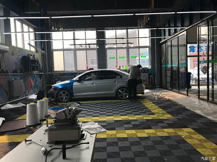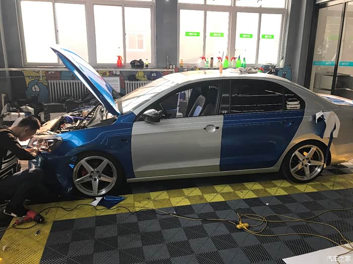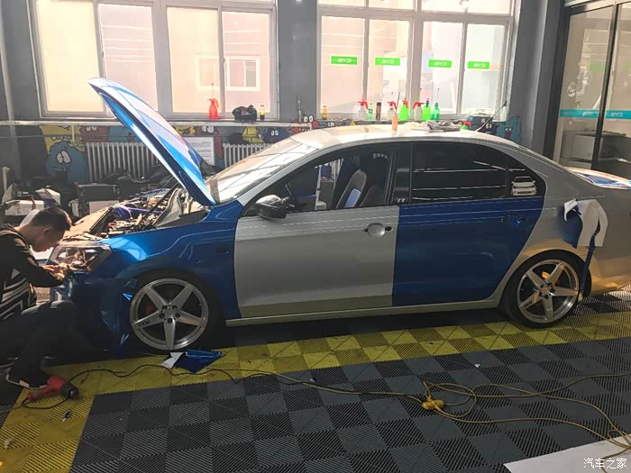 这半年来自己别的车没怎么折腾 就折腾它了 虽然动力不如CC和高R 但排气声浪挺不错,VAG车型玩了不少,手动挡却是第一次,改装件也是少的可怜,天津北京这边不如广州 珠海改装技术差很多,刹车改不了,能搭发动机的店更是寥寥无几,所以就玩玩造型得了,上下班代步利器98#喝着 也挺能跑 这周可能会改座椅,重新换骨架 海绵 上一套包裹性好一点的座椅明天去店里研究方案把之前的电光银撕掉了哥们的店随便折腾最喜欢这张前铲装上了