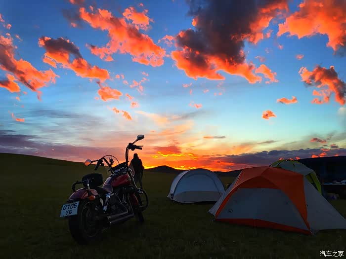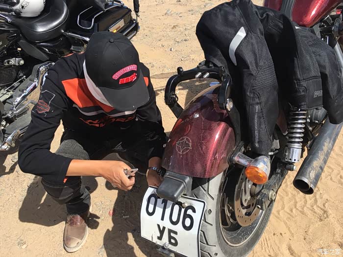 前天收到一条留言,我想在此解释一下:哈雷本就是自由的个性,改装也是按自己的喜好而改,至于是否好看,要仁者见仁,智者见智。而蒙古行为何要有一车人跟着还有保障车:如果在国内,我会和摩友们同行,但这是在蒙古国,首先蒙古国文字全世界唯一,因20年前的文字改变,内蒙古人已不能看懂外蒙的文字,除了乌兰巴托,其他城市特别是牧民基本无法英语沟通,哈雷不像踏板,600斤的重量,如果没有拖车、保障车,一但坏在路上,无法修理、运输。另外因历史原因,外蒙和汉人的关系一直很紧张,所以为了安全,必须有保障车跟随,在我看来任何旅行,安全才是第一位。摩托旅行是为了更好的风景,更多的突破自己,一个人骑着600斤的小红,在另一个国家看到最美日落和最美夕阳,面对风雨和暴晒,面对各种炮弹坑、沙石、浮土路面,面对寒冷和酷热,面对因倒车后手指受伤还要继续坚持,面对一个人孤独骑行,两个人的相依为命,做为一个女人,第一次露营在一个陌生国家,第一次学习搭帐篷,四天不冼脸不洗澡……等等,在有些人眼里这些可能不算什么,但在我心里是一次自我的突破。