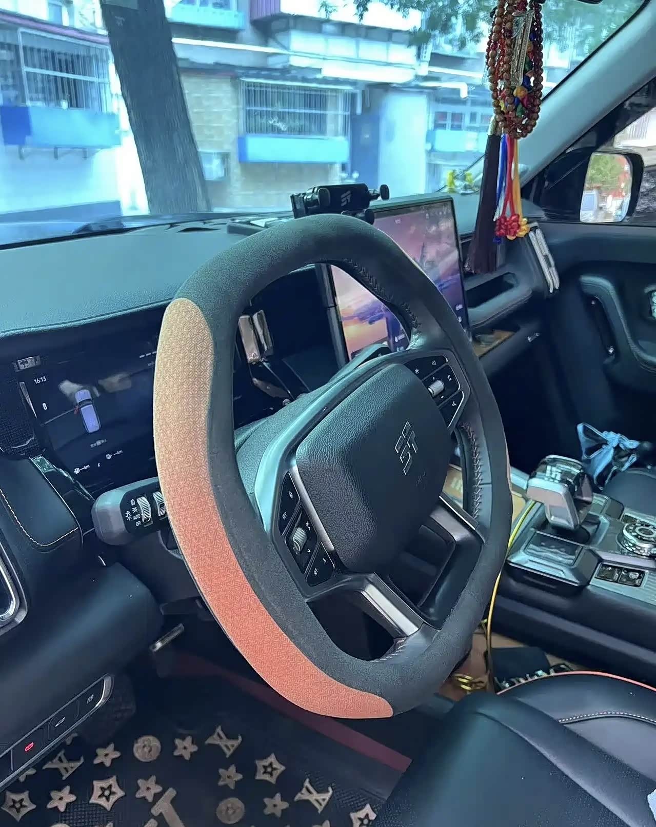 后期购买了配件因为刚上市,所以配件有点小贵。必须安装无损安装的防虫网,踏板下面的钢板防护和后排门外挡泥板,还有最关键的9mm厚隐形车衣和贪色妖姬的前挡风玻璃膜!虽然𡰪排玻璃有隐私玻璃我还是又贴了全车玻璃膜,对了还有仪表台防晒垫和隔音条,车内饰的防滑摸和屏幕钢化膜,全包围脚底和后备箱防滑垫。还有同色系列的爱马仕橙的坐垫!