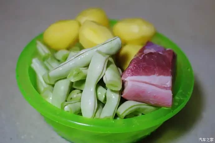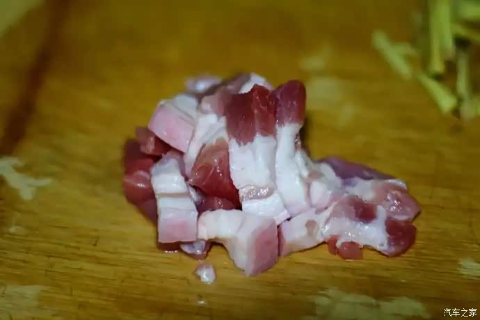 2、猪肉用清水冲洗过后切成1cm左右厚的小块,炖豆角建议买五花肉更香,我做的当天没有买好比较好的五花肉,就直接用了少许后腿肉;
