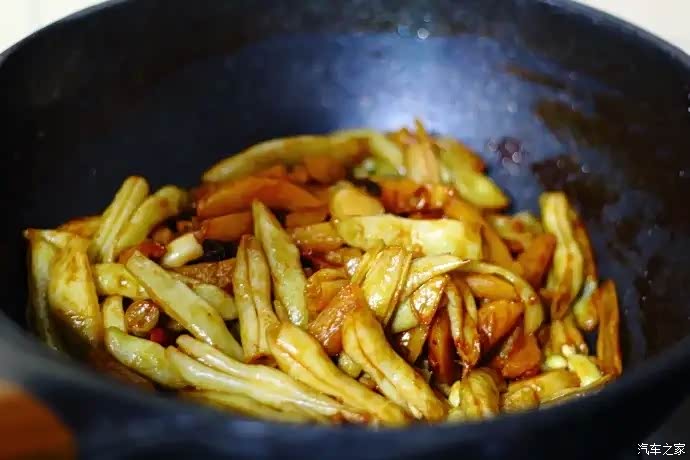 12、炖至豆角和土变软,锅中的汤收干时加入少许生抽快速翻炒均匀调味;