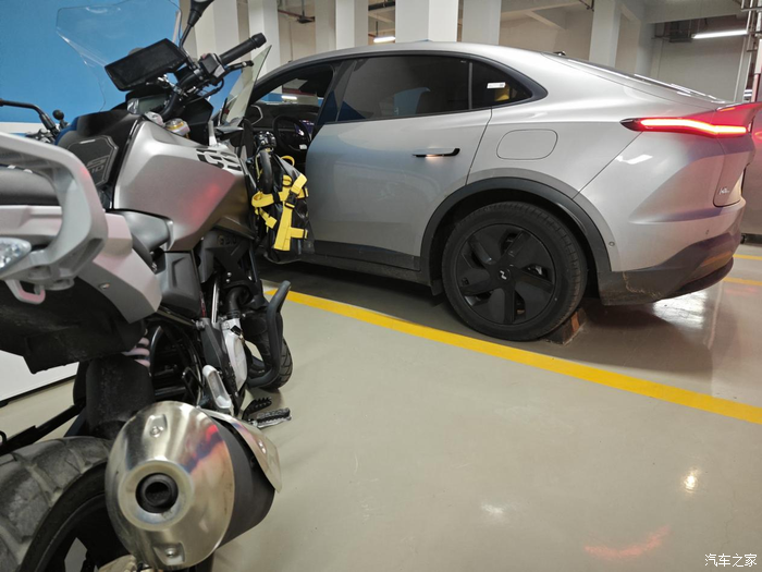 我的车位是子母车位,而且是子母一样大小,只是进出不是特别方便的造型,左侧是单元电梯间入室的走廊玻璃墙,右侧是三根支撑柱,其中一根已经被我一次不经意的倒车用后视镜撞碎一小块。车位内侧有一块6平米左右的空地,提供停放摩托车,梦想车位。但是截止目前我还没装家充,一个考虑到距离我我上班500米处的蔚来三代换电站已于12月中旬开通提供乐道换电,二是考虑这一两年房地产低迷准备换房,如果装了家充到时候还要移机比较麻烦,而且小区门口有两处直流桩,就很方便。而且还有一点,有一个跟我奋战过七八年的老兄弟,目前他去了棒子国,长期不回来,车位上的充电桩也一直空着,为了不让他的充电桩生锈,他希望我经常帮他开机使用,本着为人民服务的原则,我是可以效劳的。