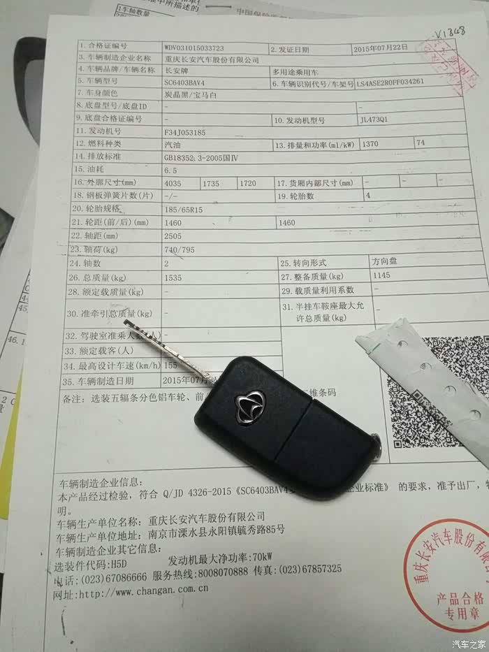 ,去了越看越漂亮,在店里办完手续交了强险,然后车提到检修车间,因为路远路上要四个小时,这时候已经快到车管所午休时间了,所以也没看检修的情况,也不知道有没有传说中的长安锈