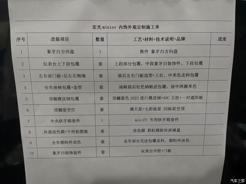 外观改色车膜3000,内饰全包红色脚垫1500,座椅全包定制加上仪表台全包,3000,这就是最终的效果。