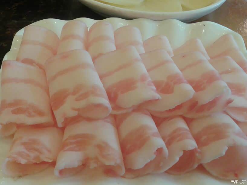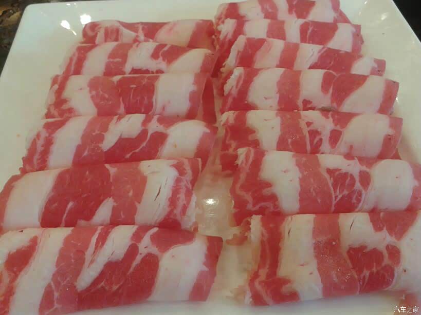 大片的五花肉、牛肉事先就腌制好。