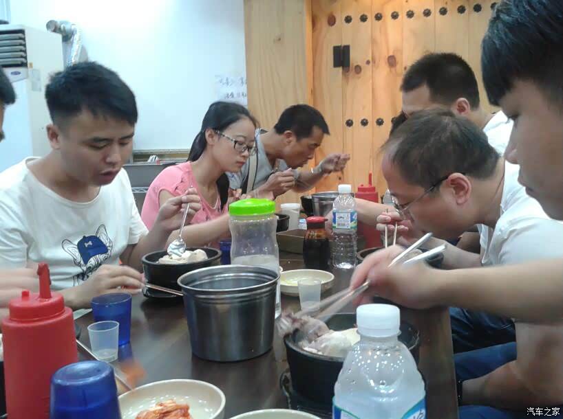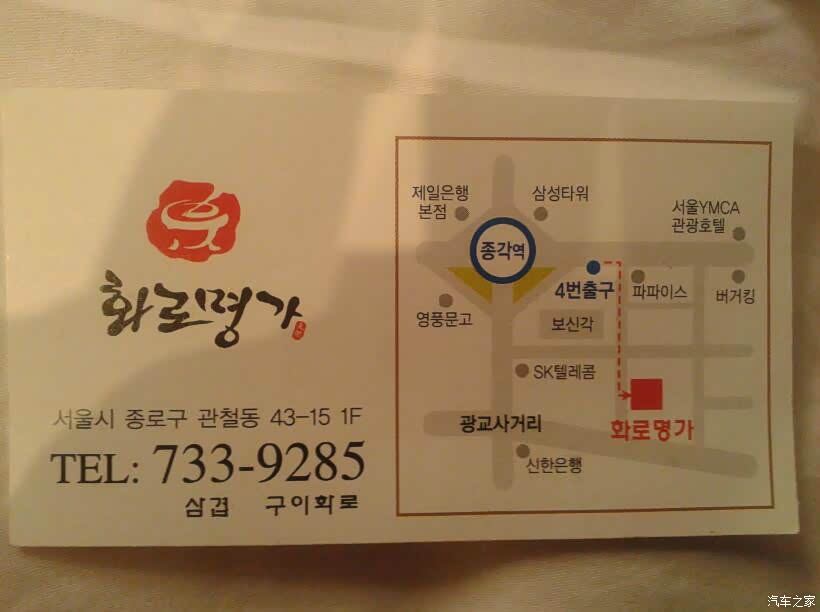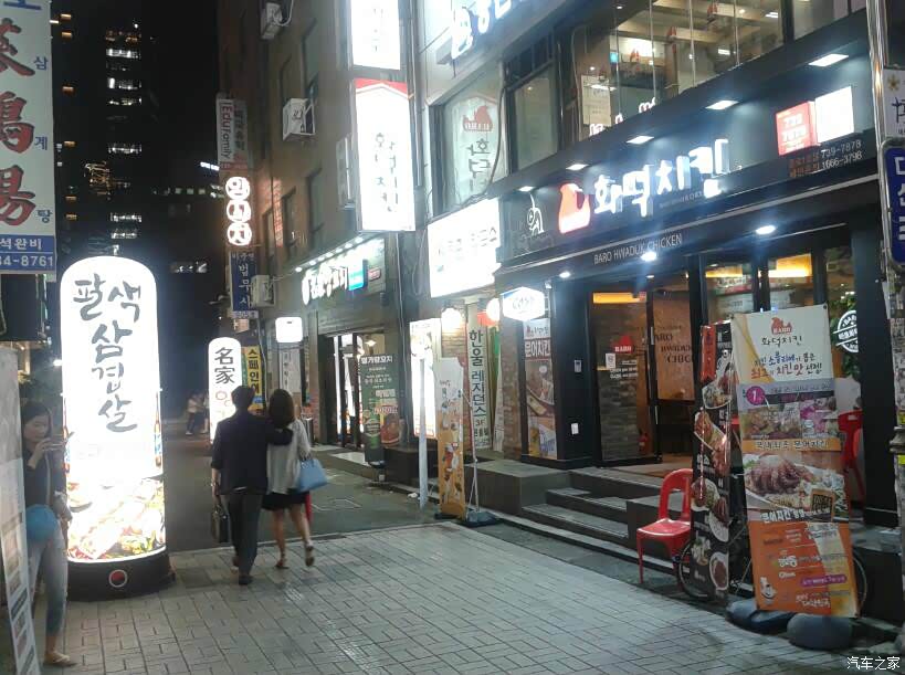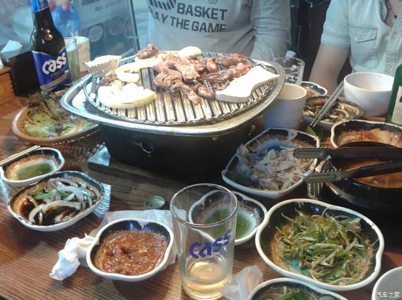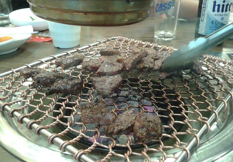 在酒店休息到下午6点钟(首尔时间比北京时间早1个时区,现在实际上是国内的5点钟),大家就按导游规定的时间在酒店门口集合等车, 然后前往吃韩国烤肉的小酒馆。