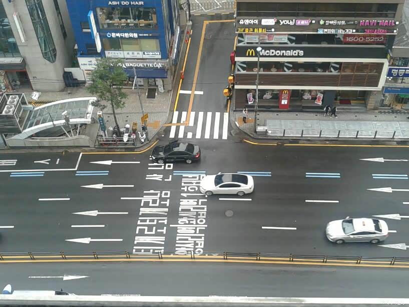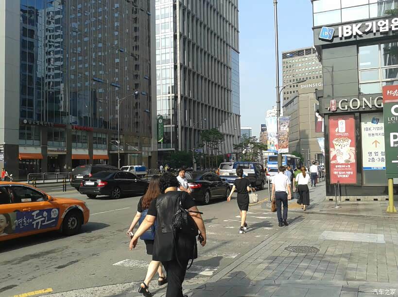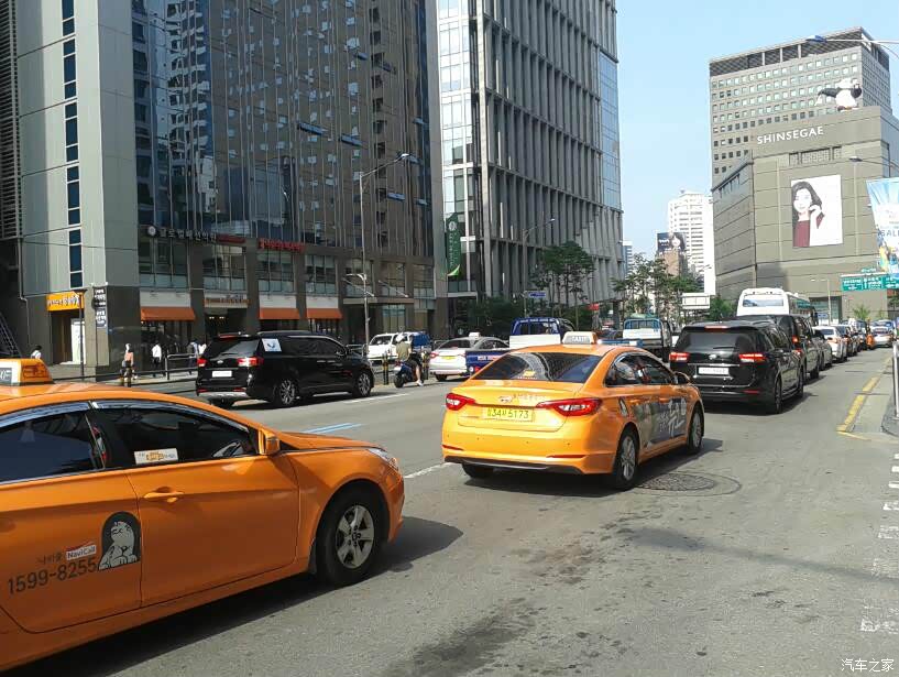 在等旅游大巴的时候, 在路边拍拍首尔的街景打发时间。这种桔黄色的出租车,听导游说是全是出租车公司的。 银色的出租车, 多半是私人的。