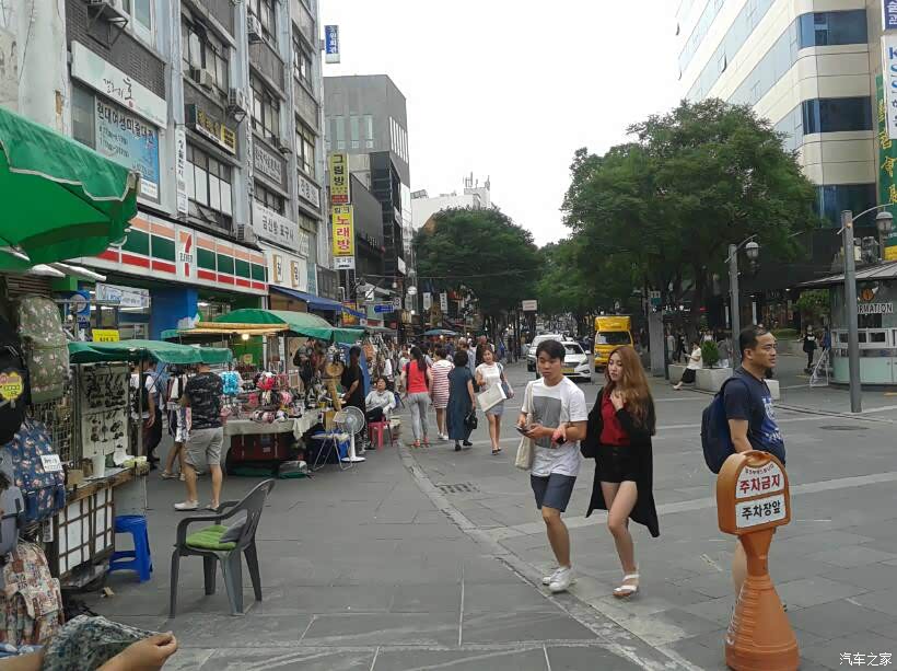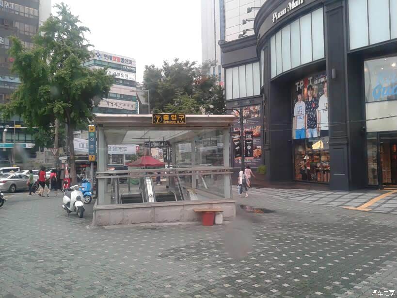 【在韩国的第三天】上午行程 化妆品市场、新罗免税店购物。快快和大家分享你的行程规划和感想吧。6月24日,星期五。一早醒来, 外面下着雨,按老规矩在酒店门口等车,街上的行人还是匆匆忙忙地赶去上班。在路上, 看到这么一辆乖巧的车辆, 非常喜欢。 不知道是KIA的哪一款?过马路, 行人还是那么守规矩。哈。。。! 一哥们展示他买的外烟,拿远点, 抽不惯!今天在酒店门口集合时,有团员严重迟到,结果按事先领队和导游规定的游戏规则:谁迟到, 谁就出钱请大家喝当地有名的香蕉牛奶。 这香蕉年哏味道还真不错, 大家异口同声地说:XXX,明天继续迟到哈, 给你点个赞!这是地铁7号线出入口...