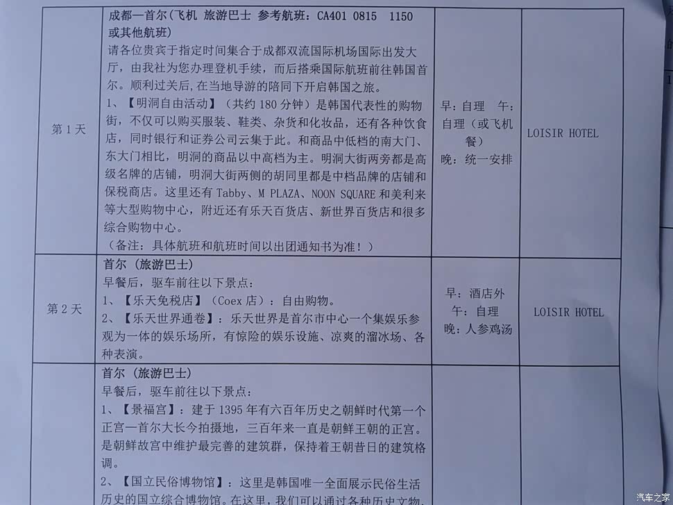 【在韩国的第一天】上午行程 机场至市区、拌饭文化体验馆品尝拌饭、参观赌场。快快和大家分享你的行程规划和感想吧。在机场与韩国地接导游汇合后, 就准备乘车进市区。 韩国导游喊我们先把旅游大巴士的车牌照拍下来,到时方便在各景区时找车。 韩国导游姓金, 是一位已经有两个孩子的帅爸, 讲着一口流利的中国话,据自我介绍是曾在中国的东北留过学。一路上, 金导就简单地给我们介绍了一下韩国的历史、经济、风土人情。据说韩国在朝鲜半岛占有45%的面积, 人口有5000多万,人口数量是朝鲜的2倍, 所以韩国也是世界人口密集的国家之一。 经济水平在中国之上, 但远远低于超级发达的日本。坐在旅...