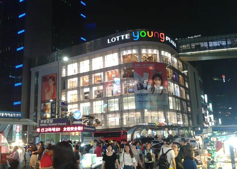 从东大夜市回来, 时间还早, 大家就说再逛一下明洞。 明洞,是韩国代表性的购物街,不仅可以购买服装、鞋类、杂货和化妆品,还有各种饮食店,同时银行和证券公司云集于此。