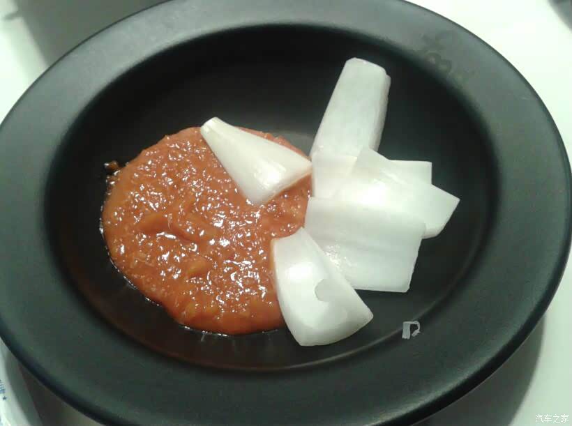 蘸烤肉的辣椒酱,配以洋葱, 味道鲜美。