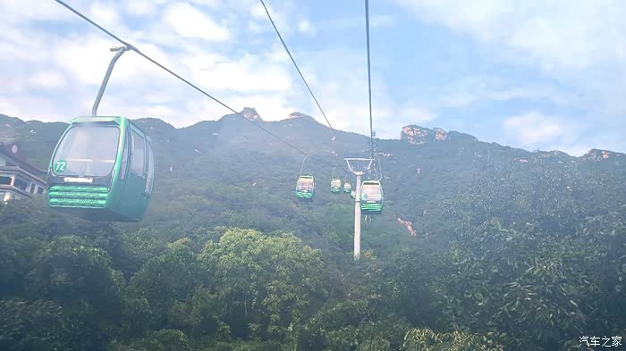 索道缆车全封闭,隔着玻璃看景有点模糊。