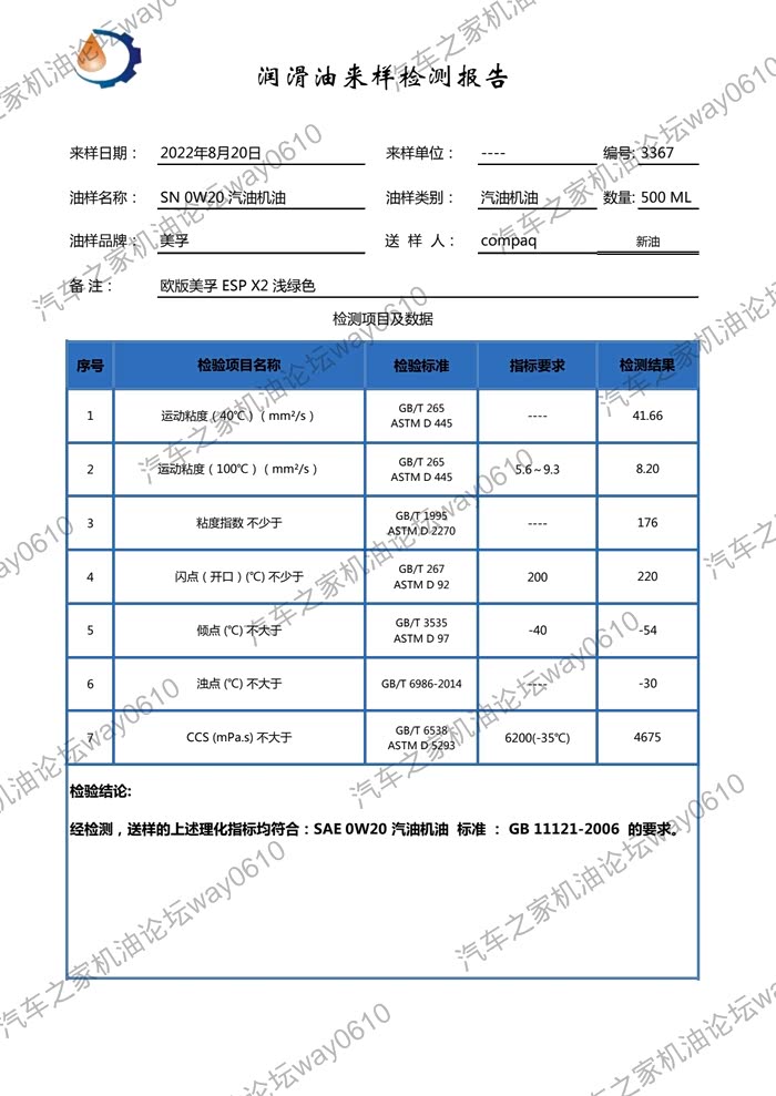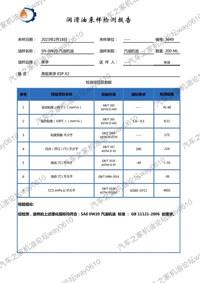 检测只对样品负责,样品由论坛车友“CXY1129”提供。