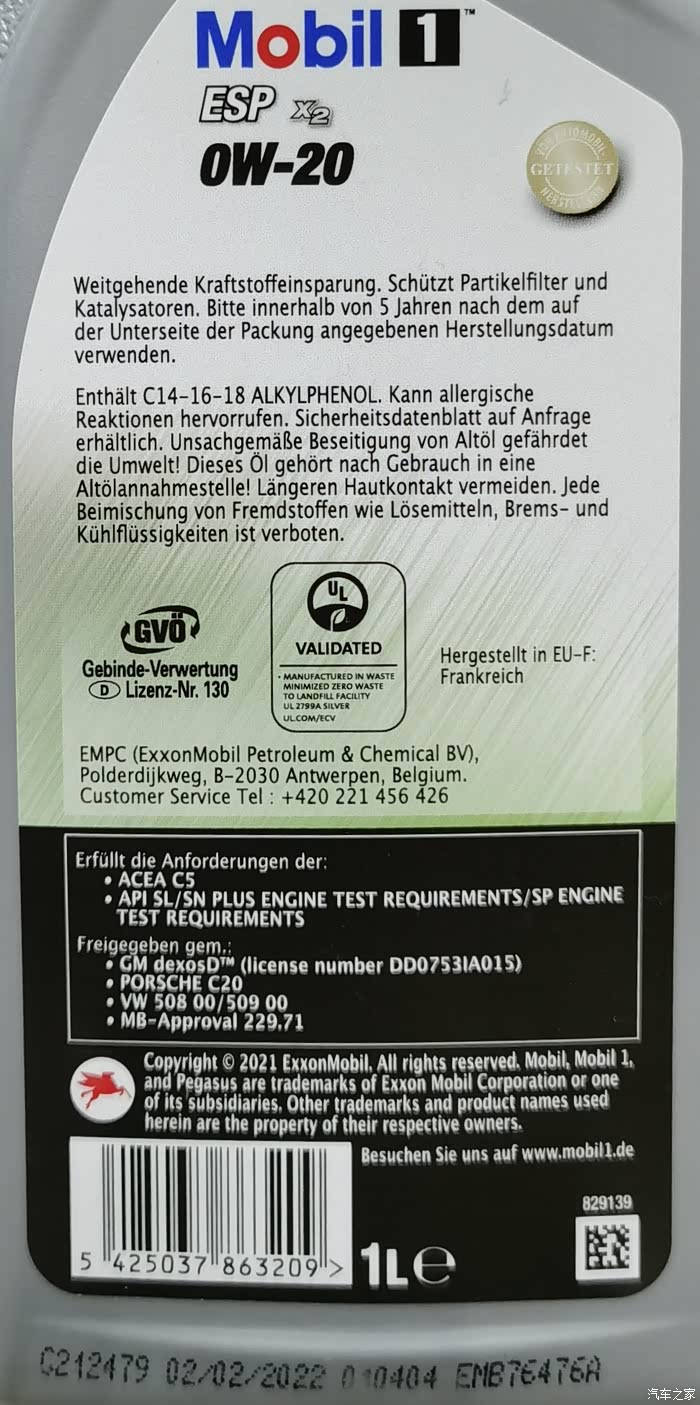 可以看到,美版和欧版的PAO含量都是20%-30%,GTL含量50%-60%,矿物油含量1%-5%,基础油很不错,配方一样。