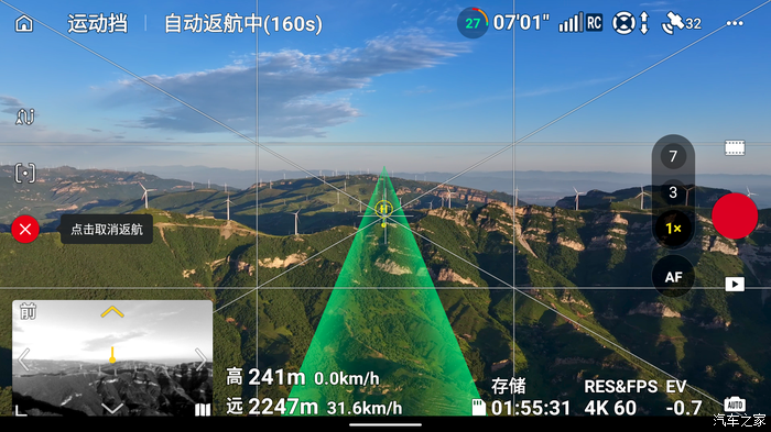 没有禁飞区的地方,不用担心电池电量低,无人机会自动返航,安心等待即可。