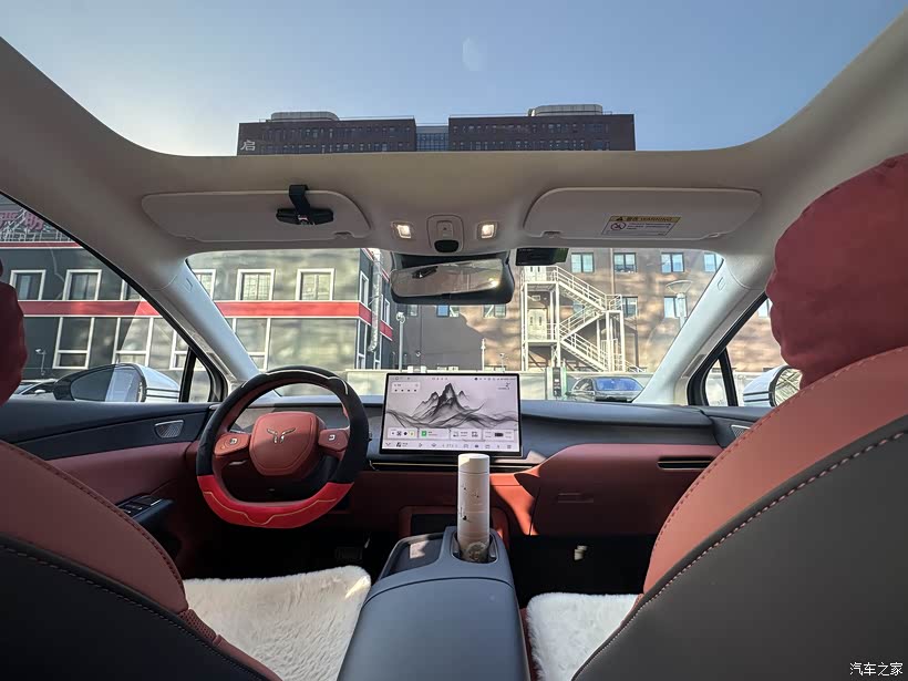 揭开提车罩,元气红的车身在阳光下熠熠生辉,贯穿式发光旗标搭配点阵式格栅,既有红旗的经典底蕴,又有电动化的未来感。坐进车内,Nappa真皮座椅触感细腻,15.6英寸悬浮屏与65寸AR-HUD科技感拉满,母婴级无异味材质让人倍感安心。